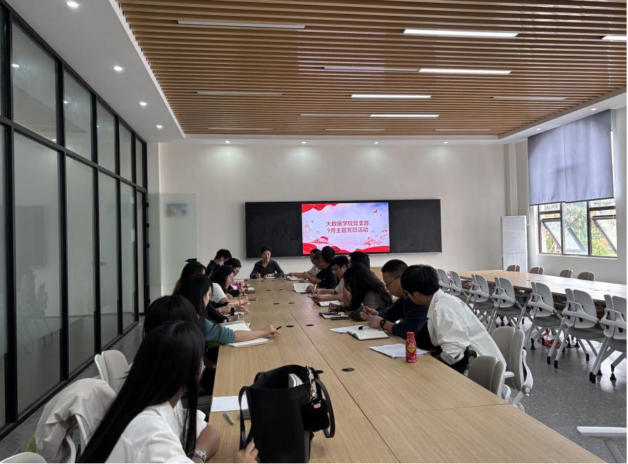9月26日中午,大数据学院党支部在党员活动室召开9月主题党日活动,会议由党支部副书记宋毅主持,全体党员参会。